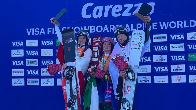 Jasmine Coratti sale per la prima volta in carriera sul gradino più alto del podio in Coppa del mondo e lo fa nel PGS di casa, a Carezza, dove riesce a trovare il miglior feeling con la Pra di Tori e a battere la polacca Aleksandra Krol-Walas in finale per soli 14 centesimi. Sul podio anche la giapponese Tsubaki Miki, che batte l'elvetica Julie Zogg nerlla small final.Coratti, 23enne della Val Venosta, portacolori delle Fiamme Oro, era salita per due volte sul podio di Coppa, senza mai cogliere il successo: era stata seconda nel Pgs di Scuol, la scorsa stagione, e si era classificata terza nel Psl di Bad Gastein, tre giorni dopo il podio di Scuol. Ora, corona il sogno di conquistare la vittoria. Si era fermata ai quarti di finale Elisa Caffont, a causa di una caduta nel testa a testa con la Zogg. Quarto posto, invece, per il fratello di Jasmin, Edwin, battuto in small final dall'esperto Benjamin Karl, ma comunque il migliore degli italiani. Ai quarti erano usciti Maurizio Bormolini, battuto dal bulgaro Radoslav Yankov e Daniele Bagozza, battuto dall'austriaco Benjamin Karl. Fuori agli ottavi, Aaron March, Mirko Felicetti e Roland Fischnaller.