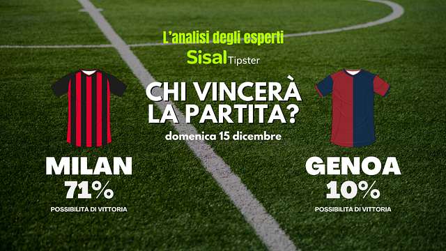 Nonostante lo stop di Bergamo, gli esperti SisalTipster hanno veramente pochi dubbi e indicano i rossoneri come favoriti: le chance di vittoria per la squadra di Fonseca sono del 71%. Le speranze di vittoria del Grifone sono ridotte al lumicino: solamente il 10%. Si sale invece fino al 19% per una sfida che vede le due squadre dividersi la posta in palio. La storia recente, però, non sorride alla squadra di Viera: negli ultimi 7 anni, il Genoa ha battuto solo una volta il Milan, nel marzo 2020 quando i liguri vinsero 2-1 a San Siro.
