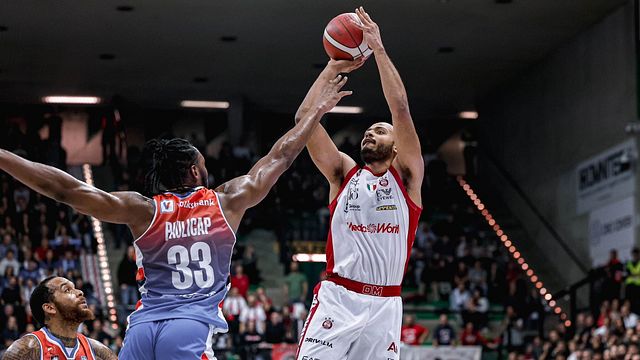 26 punti, 4/5 da 2 e 6/7 da 3, 6 rimbalzi, 3 assist e altrettanti falli subiti. Numeri impietosi, anche oltre agli eventuali demeriti e lacune che la difesa trevigiana mostra nel reparto esterni: per ritrovare un'efficacia realizzativa simile in Serie A di Shields, occorre ritornare alla prima annata a Milano (9/11 contro Trento nel novembre 2020, 13/16 contro la Virtus nell'aprile 2021, 9/11 in gara-1 di semifinale playoff contro Venezia una settimana prima di giocarsi la Final 4 di Eurolega a Colonia).