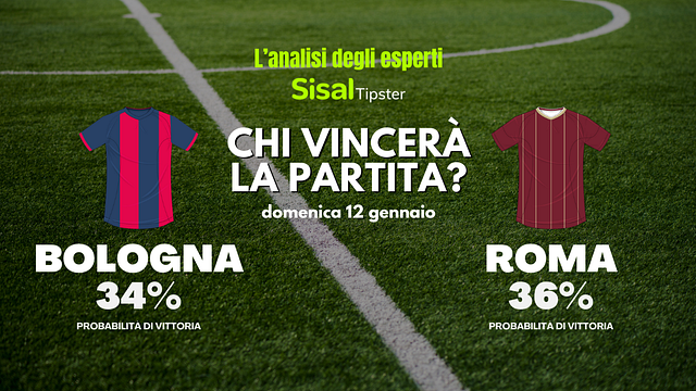 La sfida tra Bologna e Roma si prospetta una sfida all’insegna dell’equilibrio. Secondo gli esperti SisalTipster, il successo dei padroni di casa è dato al 34%, mentre il blitz giallorosso è offerto al 36%. Si scende al 30% per la divisione della posta. C’è, però, una statistica che sorride al Bologna: i rossoblù arrivano da tre vittorie consecutive contro i giallorossi. Chi sbloccherà la partita? Anche qui, gli esperti vedono una situazione estremamente equilibrata: le chance di vedere il Bologna segnare per primo sono del 43%, mentre quelle della Roma sono del 46%.