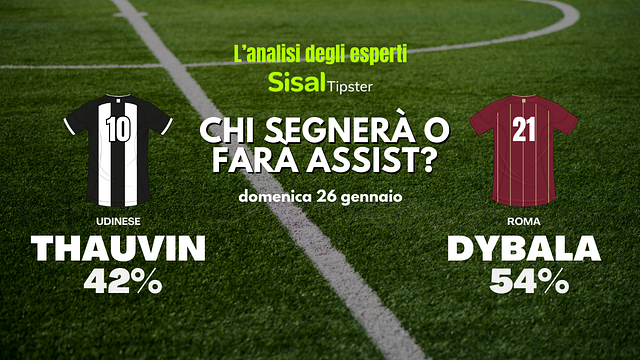 Sia Thauvin che Dybala potrebbero risultare decisivi nel corso della partita, magari anche con un calcio di rigore. Infatti, secondo gli esperti SisalTipster, c’è il 31% di probabilità che venga assegnato un tiro dagli undici metri: il francese e l’argentino sono, di solito, i prescelti a presentarsi sul dischetto. Attenzione poi alle opzioni in corsa. Infatti, sia Udinese che Roma dispongono di tanta qualità nella propria rosa e uno dei gol della sfida potrebbe arrivare proprio da un subentrato: le probabilità che ciò accada sono del 36%.
