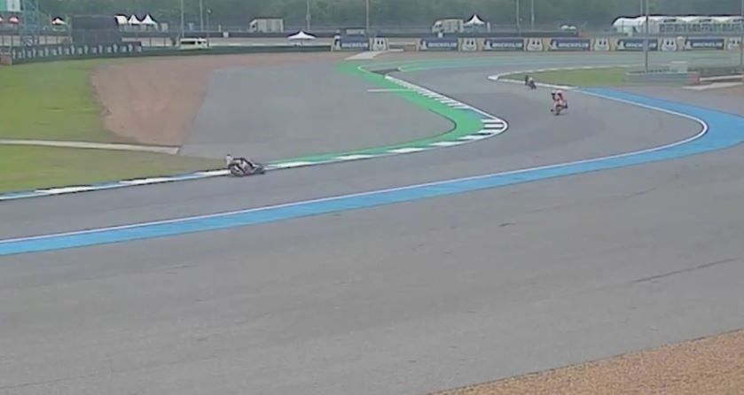 È cominciato con uno spavento il weekend di Marc Marquez in Thailandia, 15.a tappa del Motomondiale. Lo spagnolo, che sul circuito di Buriram potrebbe già conquistare il titolo di campione del mondo per l'ottava volta (sesta in MotoGP) è stato protagonista di una bruttissima caduta a pochi minuti dalla fine delle prime prove libere. Un highside alla curva 7 che ha sbattuto Marquez a terra (Honda distrutta). Quando si è rialzato il pilota zoppicava vistosamente: è stato trasportato in ambulanza al centro medico del circuito e successivamente all'ospedale di Buriram per controlli alla gamba sinistra e alla schiena.