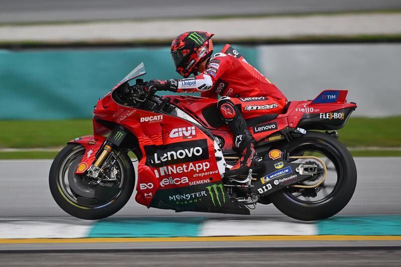 Pedro Acosta si ferma alle porte della top ten stessa (undicesimo). Avvio cauto per Francesco Bagnaia che non si spinge oltre la diciassettesima casella della classifica dei tempi (nessun time attack per il tre volte campione del mondo), due posizioni davanti alla KTM Enea Bastianini. Ai microfoni di Sky Pecco si è mostrato prima di tutto colpito dal "volo" del suo rivale nella corsa al titolo delle due ultime stagioni, puntando il dito sugli pneumatici e sulla dotazione odierna, a suo dire non adatta alle condizioni ambientali e scarsa anche in termini di quantità.