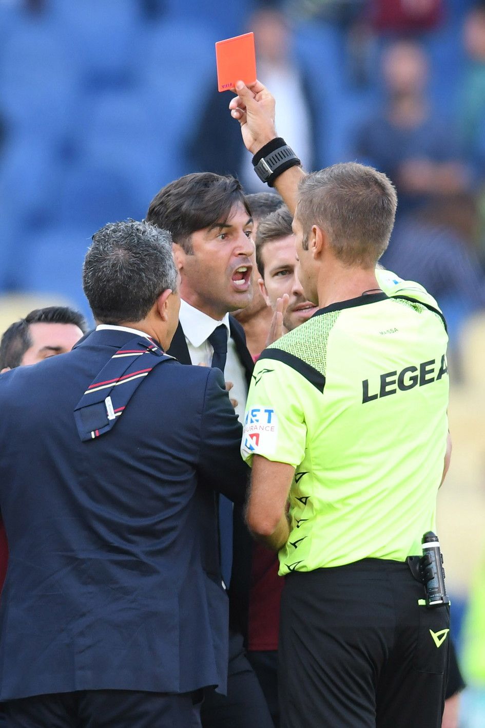 Dopo la bufera in campo, il tecnico della Roma Paulo Fonseca ha provato ad abbassare i toni negli spogliatoi. Di certo il tecnico giallorosso va incontro a una pesante squalifica per gli insulti e l'aggressione verbale ai danni dell'arbitro Massa dopo il fischio finale del match con il Cagliari, ma davanti alle telecamere ha ammesso le sue responsabilità: "Devo dire anzitutto che mi sono meritato l'espulsione, ma c'è da fare chiarezza sul gol annullato a Kalinic. I giocatori mi hanno detto che Massa aveva detto 'no' al fallo e poi chi è intervenuto, il Var?".
