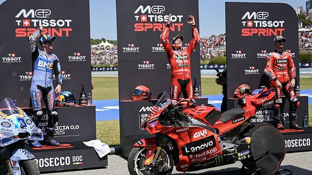 Marc Marquez ha voluto commentare la sua quinta vittoria in altrettante Sprint Race cominciando da quanto è avvenuto dopo la gara: "La celebrazione del podio alle curve 9 e 10 è stata bellissima, i tifosi hanno festeggiato tutti e tre i piloti, è stato un bel momento di motociclismo - le parole del pilota Ducati a Sky dopo la gara corta di Jerez -. Ho attaccato subito Quartararo perché ne avevo di più, ho voluto fare la stessa strategia delle altre Sprint, cioè spingere subito e poi gestire quel secondo e mezzo di vantaggio fino al traguardo. Domani mi aspetto Alex, Fabio e Pecco molto forti, sarà un'altra gara".