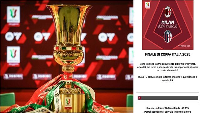 Si è aperta questa mattina alle 10, sia per i tifosi rossoneri sia per quelli rossoblù, la vendita dei biglietti per la finale di Coppa Italia tra Milan e Bologna, in programma mercoledì 14 maggio allo stadio Olimpico di Roma. Il sito del rivenditore è stato letteralmente preso d'assalto, tanto che, poco dopo l'orario l'apertura della vendita erano già più di 49mila i tifosi in attesa di poter mettere le mani su un tagliando per l'atto finale della competizione. I biglietti a disposizione sono circa 60mila, 30mila per squadra, e la giornata di oggi era dedicata ai soli abbonati al campionato, che hanno dovuto armarsi di tanta pazienza.