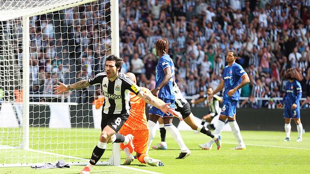 Un gol nei primissimi minuti e uno nel finale: il Newcastle batte 2-0 il Chelsea ed effettua lo scatto-Champions. La sfida del St. James's Park si sblocca praticamente subito, per merito di Sandro Tonali: tap-in vincente sul cross di Murphy e 1-0 al 2'. I Magpies tengono alto il baricentro e schiacciano i Blues, che non riescono a rendersi mai pericolosi. Isak impegna Sanchez e sfiora il bis, poi al 36' ecco l'episodio che frena ulteriormente il Chelsea: gomitata di Jackson su Botman e rosso al Var. Londinesi in dieci, dunque, che rischiano di capitolare: Burn manca di pochissimo il raddoppio. Nella ripresa il Chelsea alza il baricentro e controlla il possesso palla, contro un Newcastle che fatica a uscire. Howe risveglia i suoi riportando la difesa a quattro, ma Pope deve fare gli straordinari su Cucurella. Tonali domina a centrocampo, ma il Newcastle fatica a controllare la sfida: Enzo Fernandez sfiora il pari all'81', Pope è ancora decisivo. Dopo tante chances per i Blues, però, ecco il colpo del ko che fa esultare la Toon Army: Bruno Guimaraes trova la traiettoria perfetta e il 2-0 al 90'. Vince il Newcastle, che sale a 66 punti e si prende il terzo posto: scavalcato il Man City (65), il Chelsea resta invece appaiato all'Aston Villa a quota 63. Champions tutt'altro che scontata per Maresca, nonostante l'ottima gara disputata in dieci.