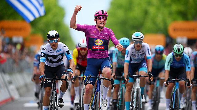 La terza tappa dell’edizione numero 108 del Giro d’Italia viene vinta da Mads Pedersen. I 160 km ancora in Albania, con arrivo a Valona, si esauriscono con la volata ristretta, in cui il danese è perfetto ad anticipare tutti e a registrare il secondo successo in questa Corsa Rosa. L’alfiere della Lidl-Trek torna anche ad indossare la maglia di leader della classifica generale, strappandola a Primoz Roglic della Red Bull-Bora-Hansgrohe.