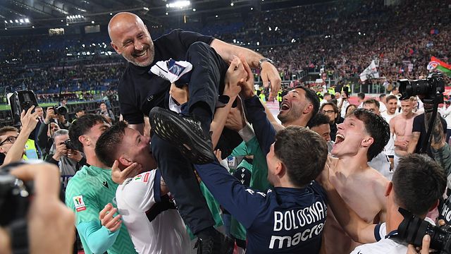 L'allenatore rossoblù Vincenzo Italiano ha commentato ai nostri microfoni la vittoria per 1-0 sul Milan che ha regalato al Bologna la Coppa Italia: "Dopo alcune delusioni forse è anche meritata, abbiamo fatto una grande partita, una prestazione incredibile. Abbiamo risposto alle mosse del Milan, il percorso di quest'anno viene coronato con la coppa, questa gente meritava un premio. Rivincita dopo le finali perse? Sono state tre delusioni pesanti, non pensavo di ripresentarmi e prendermi la rivincita e invece ci sono riuscito. Mi ha mandato un messaggio oggi il figlio di Joe Barone, la dedica speciale va a tutta alla sua famiglia, mi ha fatto un immenso piacere stamattina leggere un messaggio da parte loro. Lo dedico a questi ragazzi ma anche a tutta la famiglia di Joe perché siamo stati vicini ad alzarla anche con loro. Abbiamo fatto un percorso in crescendo, con qualche difficoltà iniziale ma poi una grande crescita da parte di tutti. Oggi è stata una prestazione grandiosa, sono davvero contento".