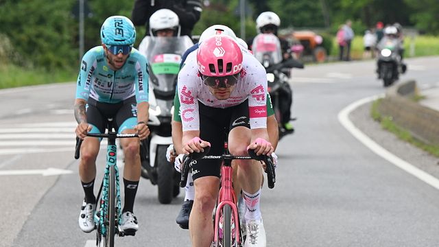 La fuga va in porto e la spunta Kasper Asgreen, ma la frazione odierna sarà ricordata p er l'allungo di Isaac Del Toro: grande guadagno su Ayuso, Roglic e Tiberi dopo una maxi-caduta di gruppo.La 14a tappa della corsa rosa porta la corsa in Slovenia, nei 195km da Treviso a Nova Gorica. La prima fase è tutta in pianura, poi ecco lo strappo di Goniace/San Martino (3.5km al 5%) e il circuito finale che verrà ripetuto due volte, con lo strappo di Saver (900m al 7.7%) come punto-chiave. Partono subito in quattro, che vengono tenuti a fuoco lento dal gruppo col distacco che oscilla a lungo tra un minuto e due minuti. Si tratta di Kasper Asgreen (EF Education-EasyPost), Clement Davy (Groupama-FdJ), Mirco Maestri (Team Polti-VisitMalta) e Martin Marcellusi (VF Group–Bardiani CSF-Faizané), che procedono di comune accordo fino al primo strappo: qui si stacca Davy e restano in tre. Dietro di loro, la pioggia scatena il caos: maxi-caduta di gruppo che coinvolge anche Bernal, Ayuso, Tiberi, Mads Pedersen e Ciccone, che ha la peggio ed esce di classifica.