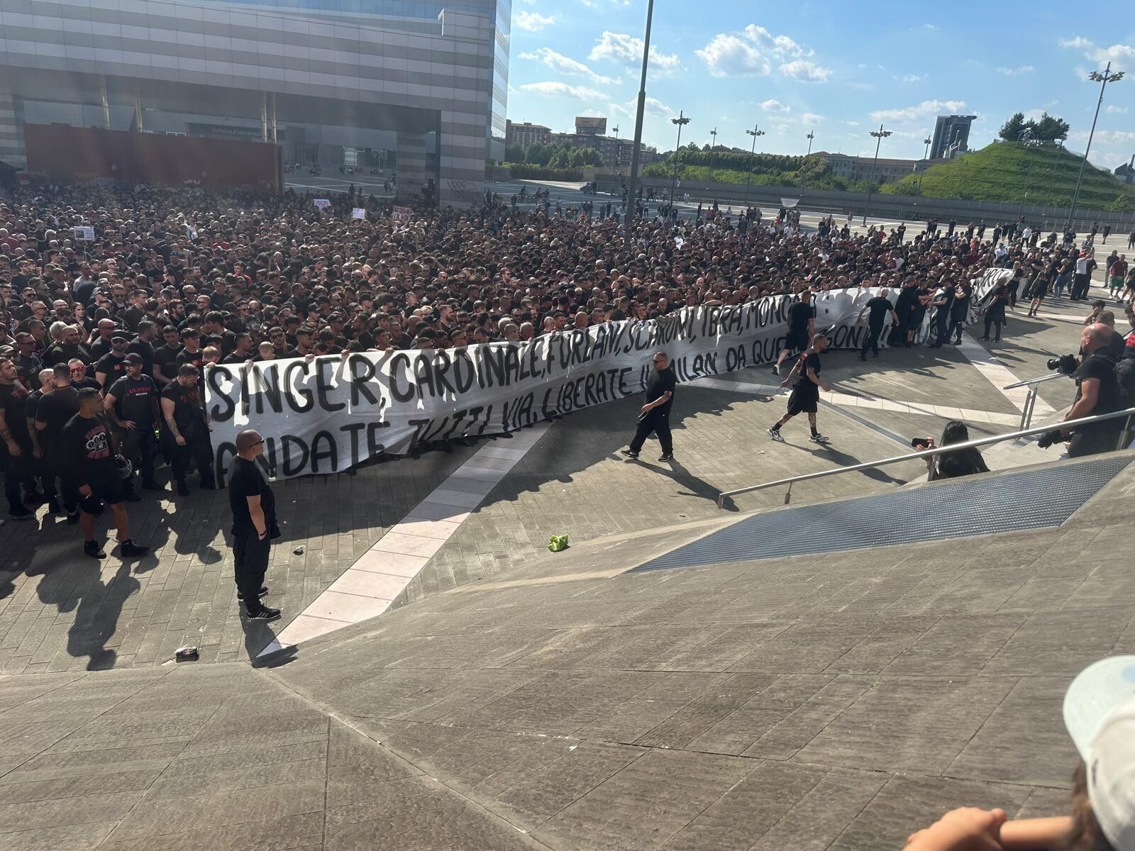Continua la protesta dei tifosi davanti a Casa Milan. E nel corso della contestazione, la Curva Sud ha lanciato il suo messaggio a società, dirigenza e calciatori. "Questa é la risposta più bella che i milanisti potessero dare: dobbiamo dare un segnale forte. Non esiste curva, club, rosso, arancio: esistono i milanisti e il milanismo. Cioè tutto ciò che qui in sede si sono dimenticati da un pezzo. Le cose da dire sono tante. Torniamo in questa piazza dopo tre anni dallo Scudetto più bello di sempre - recita l'incipit del messaggio degli ultrà rossoneri -. Torniamo in questa piazza aver celebrato il ritorno in Champions assieme a Paolo Maldini. L’estate scorsa hanno voluto fare di testa loro, con arroganza, non ascoltando le parole della piazza, che voleva un profilo forte come Conte. Si sono accontentati di gente di basso profilo, mediocre, rinnegando la campagna acquisti a gennaio. Hanno abbandonato due allenatori al loro destino. Fonseca esonerato dai giornalisti fuori dallo stadio".