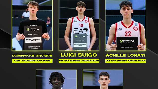 Insieme a Grunkis (Zalgiris), Gueye (Real Madrid) e Srzentic (Mega Belgrade), Achille Lonati e Luigi Suigo (guardia e centro EA7 Emporio Armani Milano U18) sono stati selezionati nell'All- Tournament Team delle adidas Next Gen Finals 2025 di Abu Dhabi.