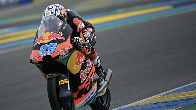 Jose Antonio Rueda fa l'impresa in Moto3 nel GP di Gran Bretagna. Dopo la penalizzazione post pole che lo ha visto partire ultimo, lo spagnolo del team KTM Ajo conquista la vittoria in rimonta su Maximo Quiles e l'italiano Luca Lunetta. Un successo da incorniciare per il 19enne andaluso che nella lotta carena contro carena col connazionale 17enne ha la meglio. Una vittoria che permette a Rueda di allungare per in classifica iridata col contemporaneo ko di Piqueras.