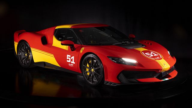 La 296 Speciale Piloti Ferrari è proposta in quattro tinte ispirate al mondo delle competizioni: Rosso Scuderia, Blu Tour De France, Nero Daytona e Argento Nürburgring. La livrea esterna ispirata a quella della 499P, in Giallo Modena, è impreziosita dal logo WEC dipinto a mano, dalla bandiera italiana sul paraurti anteriore e da un numero personalizzabile a scelta del cliente. L’esemplare svelato a Le Mans riporta il numero 51 con cui Alessandro Pier Guidi, James Calado e Antonio Giovinazzi conquistarono la vittoria nel 2023, l’anno del ritorno ufficiale di Ferrari nella massima categoria dell’endurance nonché il centenario della corsa.