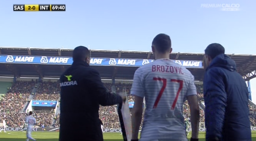 Al 70' Mancini ordina il cambio di Donkor con Brozovic, ma qualcosa, nella comunicazione con il quarto uomo, non funziona e, alla fine, esce dal campo Vidic che lascia di fatto i nerazzurri senza difensori centrali a parte Ranocchia. Tentativo di rimediare andato fallito e rabbia del centrale serbo