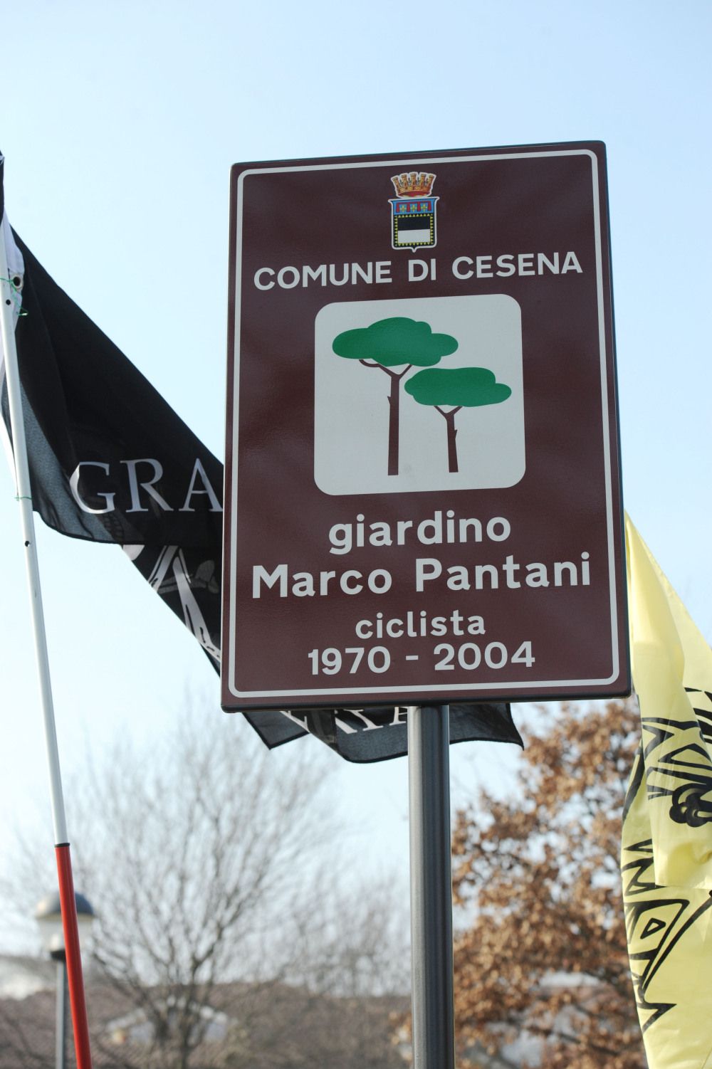 A 11 anni esatti dalla tragica morte di Marco Pantani il comune di Cesena ha dedicato un giardino all'indimenticato campione. Alla cerimonia di inaugurazione, insieme al sindaco della città, Paolo Lucchi e al presidente del Panthlon Dionigio Dionigi, c'era anche Tonina, la mamma del campione romagnolo. Il giardino legato e via Alfredo Binda.