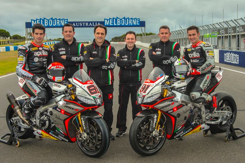 E' stata presentata sul rettilineo del circuito di Phillip Island la squadra Aprilia per il Mondiale Superbike che sta per iniziare. La formazione si appoggerà al team Red Devils e schiererà Leon Haslam e Jordi Torres. Perso il campione del mondo Guintoli, l'obiettivo di Noale resta sempre quello di vincere.