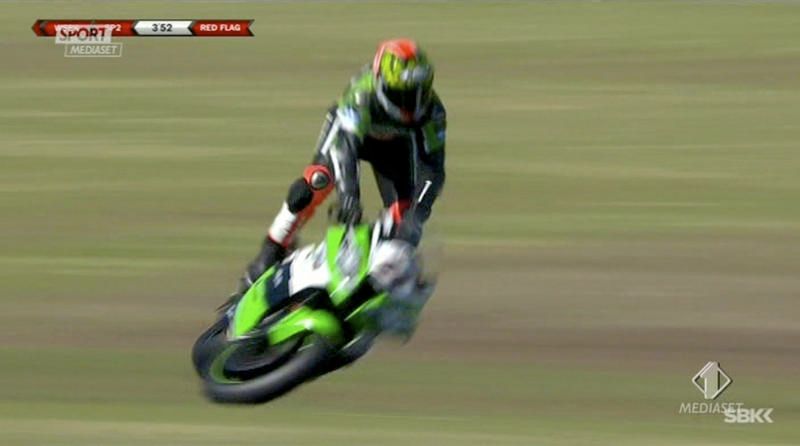 E' all'uscita della curva 12, che David Salom perde il controllo della sua Kawasaki, scivolando nella via di fuga. La ghiaia innesca però una carambola violenta per il pilota, che rotola a forte velocità sbattendo più volte la testa, prima di restare immobile nella sabbia. Portato al Centro Medico in barella, i medici confermano che lo spagnolo è cosciente e muove gambe e braccia. Trasportato poi all'ospedale di Melbourne per accertamenti.