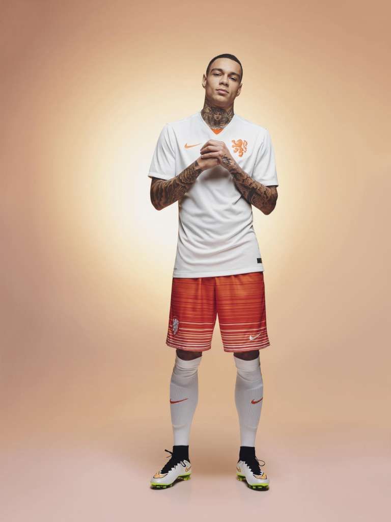 La Nike ha presentato la nuova maglia da trasferta dell'Olanda. L'arancione vivace e una grafica bianca che sembra lampeggiare caratterizzano la nuova divisa away olandese, indossata per l'occasione dal terzino del Psg, Gregory van der Wiel.