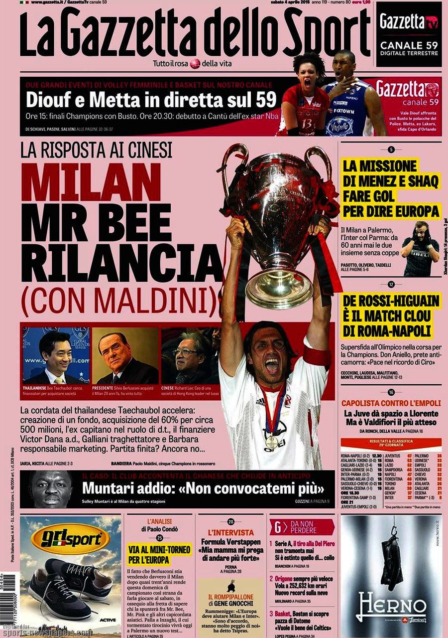 Ecco le prime pagine e gli approfondimenti sportivi dei principali quotidiani italiani e stranieri in edicola oggi, sabato 4 aprile 2015.