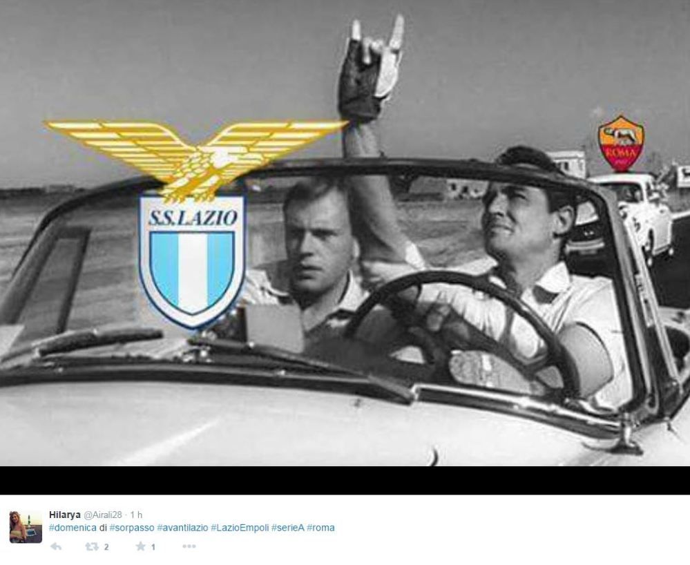 La vittoria contro l'Empoli e il pareggio della Roma contro il Torino ha regalato alla Lazio il sorpasso ai danni dei cugini. E su Twitter si è scatenata l'ironia dei tifosi biancocelesti, che ora sognano il secondo posto e l'accesso diretto alla fase a gironi della prossima Champions League.
