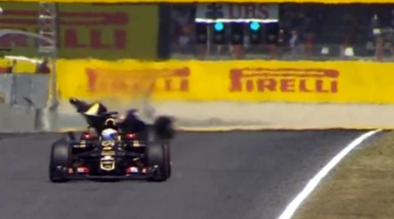La seconda sessione di prove libere del GP di Spagna di F1 è stata interrotta dopo pochi minuti a causa di Romain Grosjean. La Lotus del francese ha perso il cofano motore in pieno rettilineo, con conseguente spargimento dei pezzi in pista, costringendo i commissari a esporre la bandiera rossa.