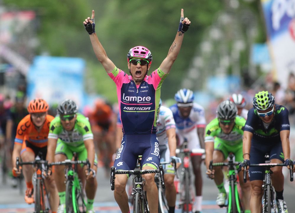 Diego Ulissi (Lampre) ha vinto la 7/a tappa del 98/o Giro d'Italia di ciclismo, da Grosseto a Fiuggi, la più lunga della corsa rosa 2015 con i suoi 264 chilometri. Alberto Contador ha conservato la maglia rosa di leader della classifica generale.