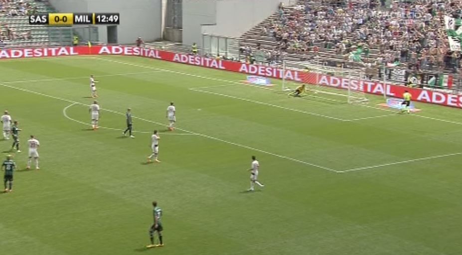 La palla sembra non aver oltrepassato completamente la linea di porta in occasione dell'1-0 del Sassuolo sul Milan firmato Berardi.