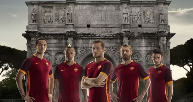 La Roma ha svelato la nuova maglia per la stagione 2015/2016. La divisa, caratterizzata da un look aggressivo, è ispirata alle armature indossate dai centurioni romani. Un messaggio forte e chiaro per gli avversari: i giallorossi sono già pronti per la battaglia e determinati a combattere come legionari. Nel dettaglio la maglia presenta una tonalità più scura di rosso lungo spalle e maniche, con dettagli gialli sui bordi delle maniche e lungo i fianchi. I nuovi pantaloncini sono bianchi con righe gialle su entrambi i lati, in continuità con quelle della maglia. Per la prima volta, le personalizzazioni sul retro della maglia (nome e numeri) conterranno un tributo grafico alle meraviglie architettoniche della Capitale, alle sue strade antiche e ai suoi quartieri, per sottolineare il profondo legame tra club, città e tifosi. Le calze abbinate alla prima divisa sono infine completamente rosse con una larga serie di galloni tono su tono sul retro del polpaccio.