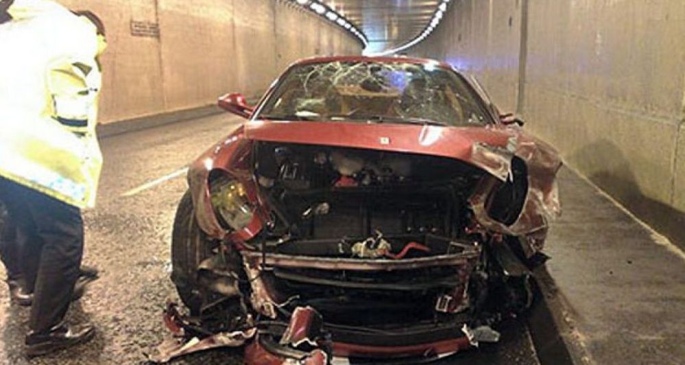 © foto-web| La Ferrari di Cristiano Ronaldo, finita contro le barriere in un tunnel di Manchester nel gennaio 2009.