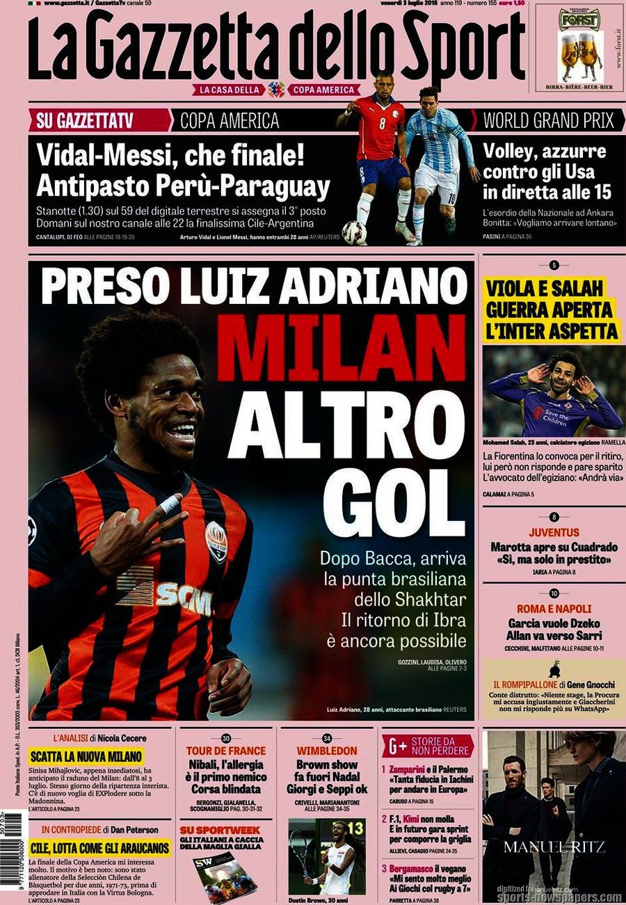 Ecco le prime pagine e gli approfondimenti sportivi dei principali quotidiani italiani e stranieri in edicola oggi, venerdì 3 luglio 2015.