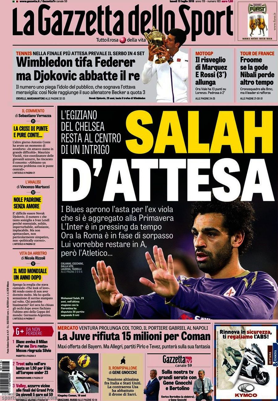 Ecco le prime pagine e gli approfondimenti sportivi dei principali quotidiani italiani e stranieri in edicola oggi, lunedì 13 luglio 2015.
