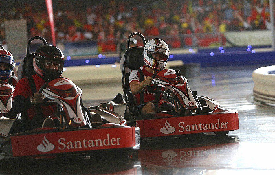 Emozionante sfida di kart al Ferrari World prima del GP di Abu Dhabi. La Scuderia, in occasione dell'appuntamento negli Emirati Arabi, ha voluto festeggiare con tutto il team il 5° anniversario del parco tematico. Bellissima lotta ruota contro ruota tra Vettel e Raikkonen, prima di provare le spaventose montagne russe del Ferrari World.