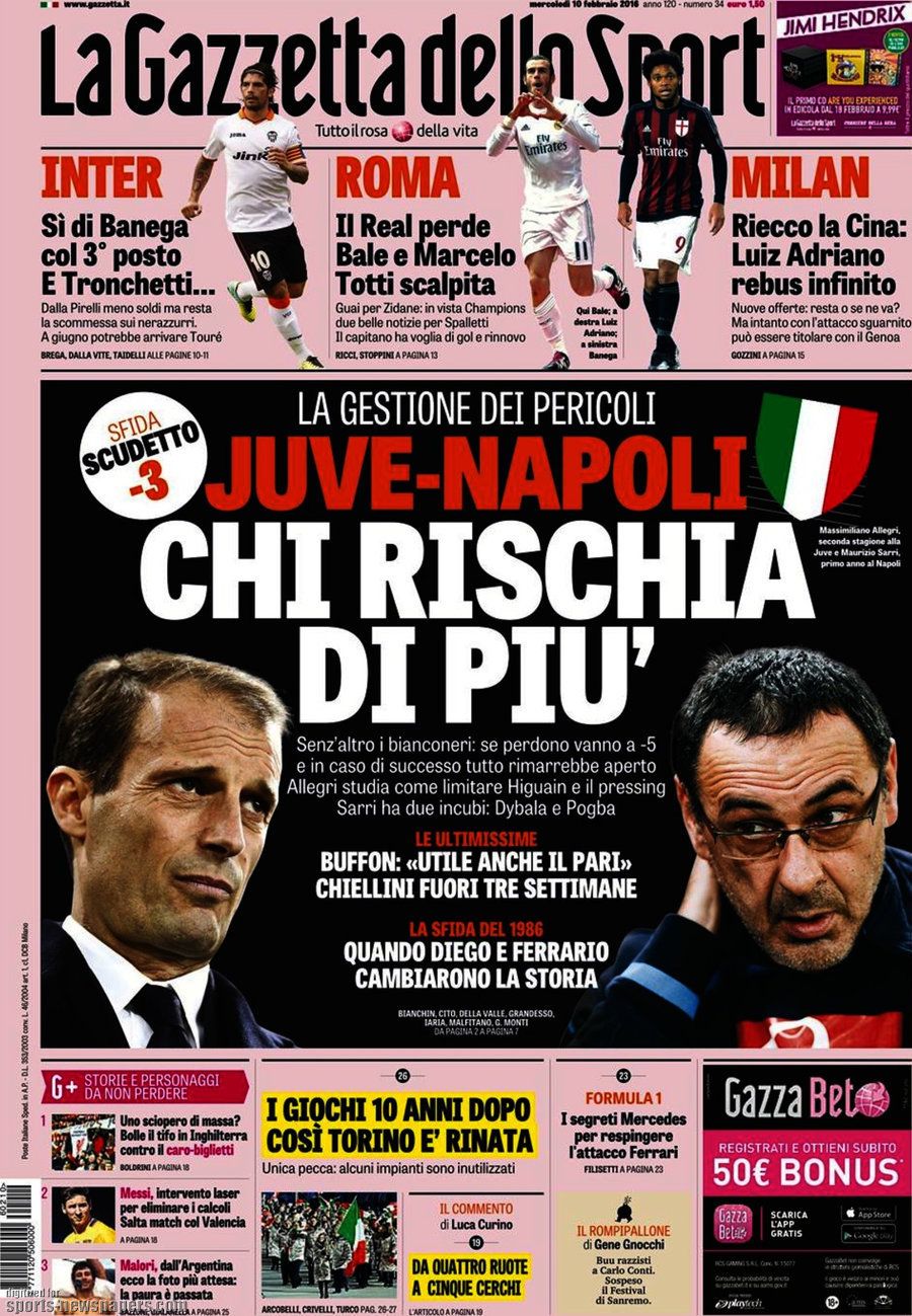 Le prime pagine dei quotidiani sportivi italiani e stranieri