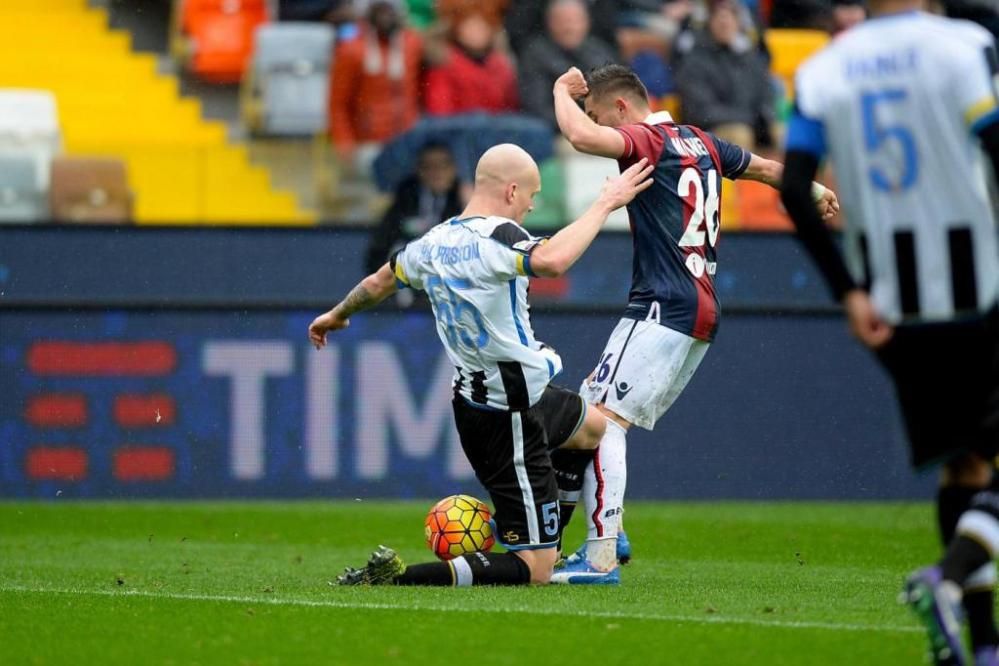 Colpo esterno del Bologna. Alla Dacia Arena la squadra di Donadoni batte l'Udinese 1-0 e blinda la salvezza a quota 33 punti. Primo tempo ricco di occasioni con un palo per parte (sinistro di Munier deviato da Danilo e colpo di testa di Kuzmanovic parato da Da Costa). Nella ripresa poi Destro decide la gara al 79' con una bella azione personale. Nel finale Felipe centra un altro palo e Zapata si divora il gol del pareggio.