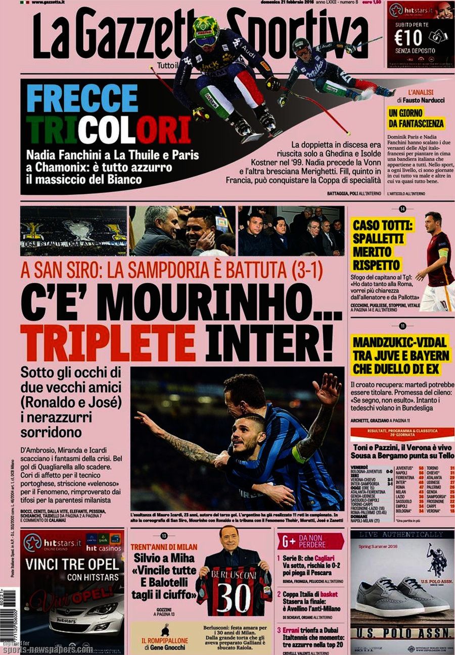 La rassegna stampa dei quotidiani sportivi italiani e stranieri