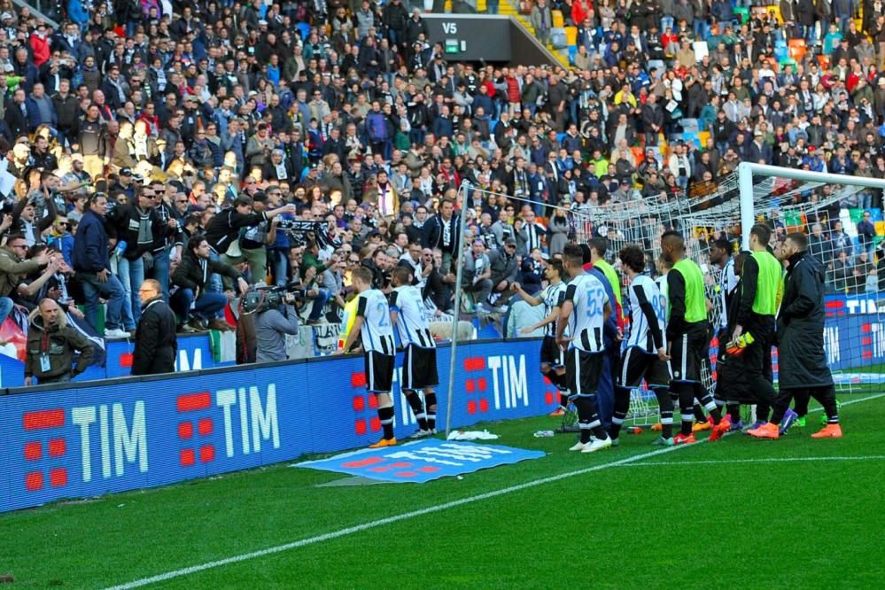 Momenti di tensione alla Dacia Arena al fischio finale di Udinese-Roma, con i tifosi bianconeri che hanno duramente contestato la squadra dopo l'ennesimo ko. I giocatori sono stati chiamati sotto la curva e pesantemente presi di mira, col capitano Di Natale che ha cercato di parlare con gli ultras per cercare di calmare gli animi. La protesta era già partita prima della partita con i tifosi della curva Nord entrati allo Stadio con 15 minuti di ritardo per protestare contro i deludenti risultati delle ultime settimane che hanno risucchiato i bianconeri in zona retrocessione.