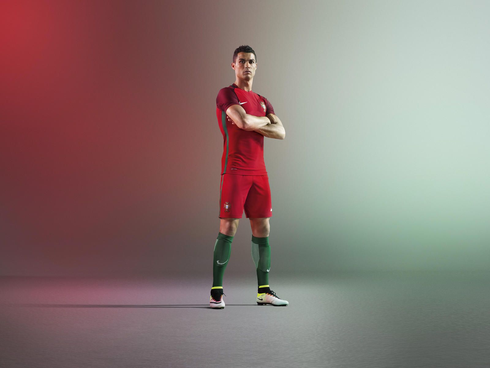 Muscoli di Cristiano Ronaldo ben in vista con le nuove maglie Nike che il Portogallo indosserà agli Europei 2016. Le divise Nike Aeroswift Vapor, ad oggi le più avanzate dal punto di vista tecnologico, sono più leggere del 10% e più elasticizzate del 50% rispetto alle divise che andranno a sostituire Ogni divisa viene realizzata usando in media 18 bottiglie di plastica riciclata. Dal 2010, Nike ha recuperato dalle discariche più di 2 miliardi di bottiglie di plastica trasformandole in poliestere riciclato, una quantità sufficiente per ricoprire 3500 campi di calcio.