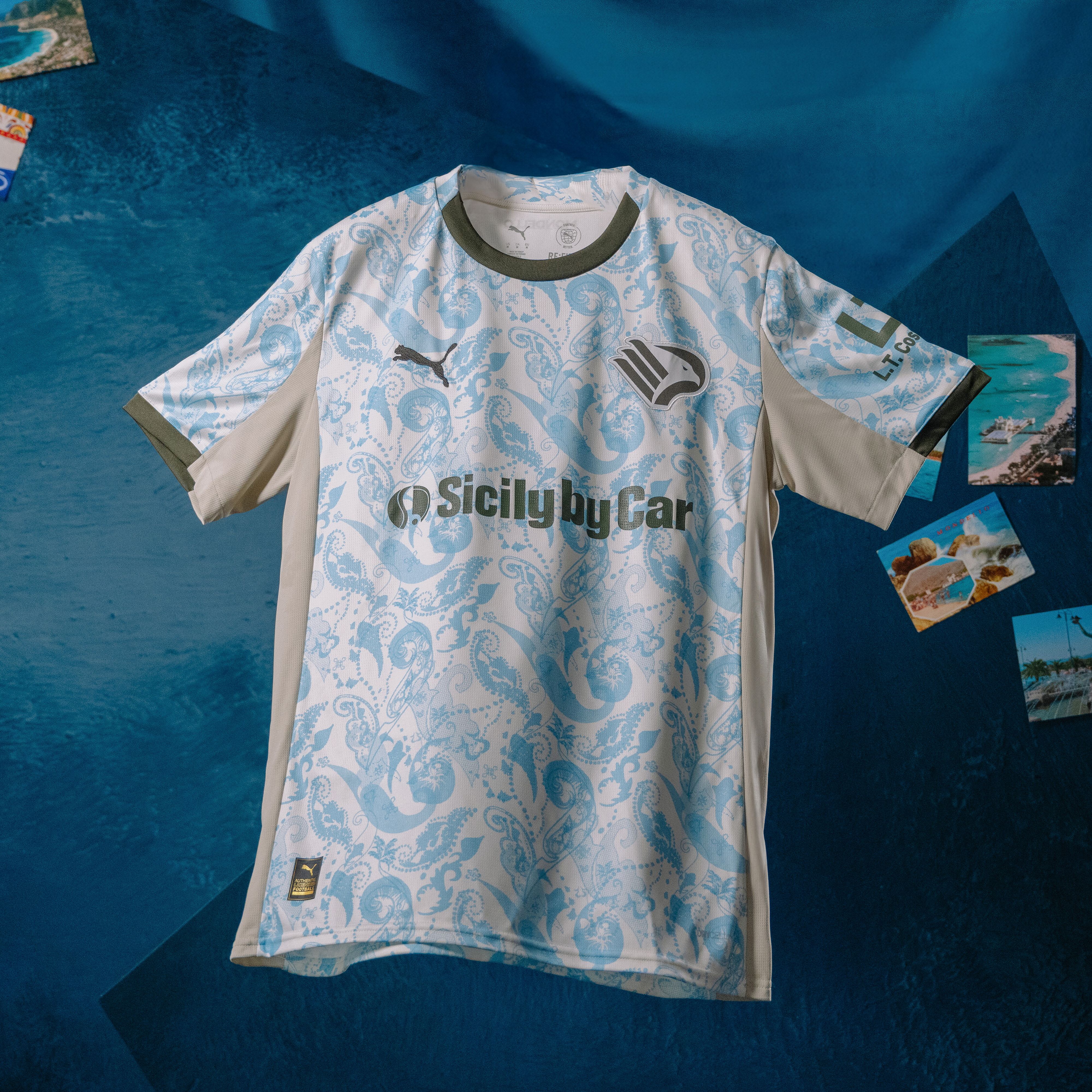 PUMA e il Palermo FC hanno svelato il nuovo Third Kit per la stagione calcistica 2025/2026 che sarà indossato da tutte le formazioni rosanero: squadra maschile, femminile e giovanili. Il nuovo Third kit è un omaggio a Mondello, cuore balneare di Palermo, ma anche borgo marinaro ricco di storia e tradizione, uno dei luoghi più amati dai palermitani, di cui si celebra la bellezza naturale e architettonica e il legame identitario con la città. Il pattern esclusivo, ideato da PUMA per l’occasione, si ispira alle forme sinuose delle architetture liberty dell’Antico Stabilimento Balneare e delle ville storiche che costellano la zona. Nascosto nel motivo grafico si cela anche un omaggio alla doppia coda della sirenetta di Piazza Mondello, simbolo del quartiere costiero e figura iconica della cultura locale. I colori del Third kit richiamano l’iconografia di Mondello: il Team Light Blue rievoca il mare e la sua spuma, il Desert Dust la sabbia chiara che conferisce all'acqua l'aspetto trasparente e il Dark Olive la vegetazione di Monte Pellegrino, che si affaccia maestoso sul golfo.