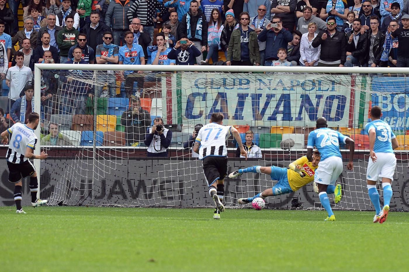 Crolla il Napoli di Sarri nell'anticipo all'ora di pranzo della trentunesima giornata di Serie A. Alla Dacia Arena, gli azzurri sono stati sconfitti 3-1 dall'Udinese vedendo allontanarsi la vetta della Juventus, ora distante sei punti. Protagonista di giornata Bruno Fernandes autore di una doppietta (e di un rigore sbagliato). Higuain trova il gol numero 30, ma nella ripresa viene espulso. Di Thereau il tris che vale ossigeno salvezza.