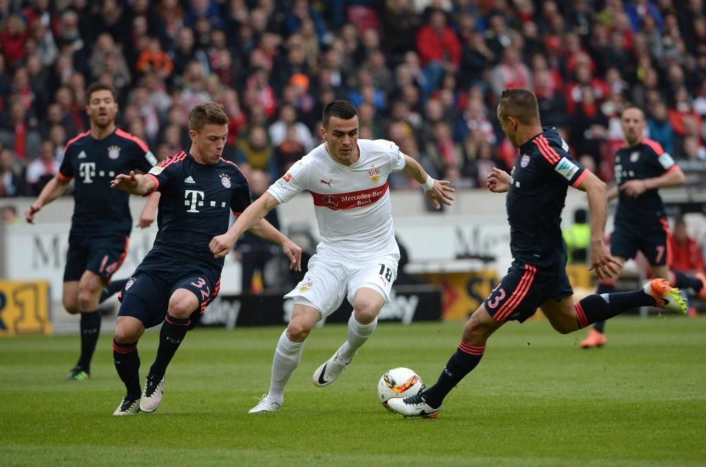 Il Bayern trova una vittoria chiave per la conquista della Bundesliga. Nel sabato pomeriggio della 29esima giornata, gli uomini di Guardiola sconfiggono 3-1 in trasferta lo Stoccarda: alla Mercedes-Benz Arena decidono l'autorete di Niedermeier, il gol di Alaba e il sigillo finale di Douglas Costa; ai padroni di casa non basta Didavi. I bavaresi salgono a + 8 sul Borussia Dortmund, impegnato domenica nel derby della Ruhr con lo Schalke.