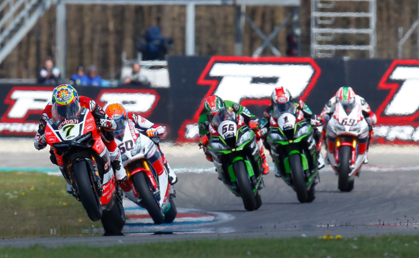 Bellissima gara-1 ad Assen vinta dalla Kawasaki di Jonathan Rea. La Superbike regala grandi emozioni in una lotta all'ultima curva che vede finire fuori pista Sykes e van der Mark. Davies, in testa per gran parte della corsa, è secondo. Hayden terzo, mentre Giugliano si ritira dopo pochi giri.
