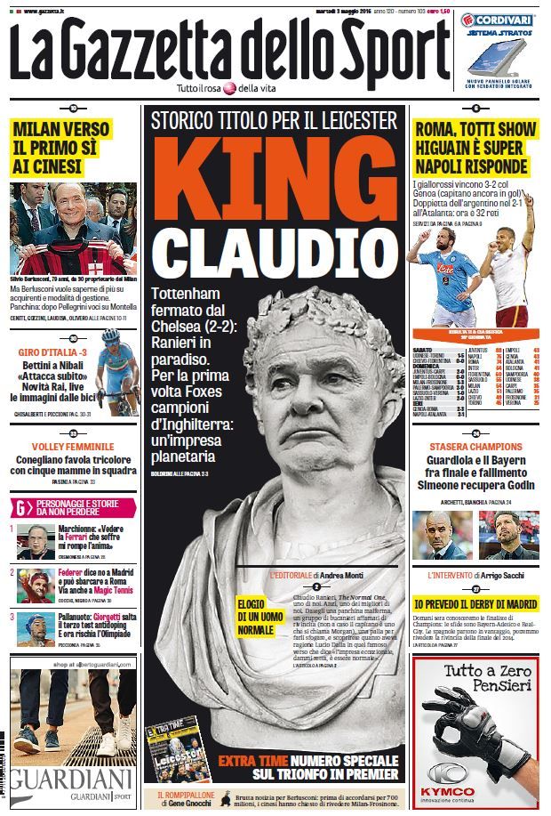 Calcio Calcio estero 1 di 13 2 di 13 3 di 13 4 di 13 5 di 13 6 di 13 7 di 13 8 di 13 9 di 13 10 di 13 11 di 13 12 di 13 13 di 13 Ranieri, l'impresa sui giornali 1 di 13 2 di 13 3 di 13 4 di 13 5 di 13 6 di 13 7 di 13 8 di 13 9 di 13 10 di 13 11 di 13 12 di 13 13 di 13 Avvia slideshow Ranieri, l'impresa sui giornali I quotidiani di tutto il mondo celebrano il trionfo del Leicester 03 mag 2016 - 00:19 13 foto i giornali leicester MY DACIA ROAD 2025 My Dacia Road, tra avventura e off road Ultimi video Pace fatta tra Allegri e Ianni dopo la rissa in campionato Italiano: "Gol vittoria meritato" Cuesta: "Prestazione ottima" Benedyczak: "C'è delusione, testa al Pisa" Lykogiannis: "Dobbiamo difendere la coppa" Bologna-Parma 2-1: gli highlights Cuesta: "Sono orgoglioso e dispiaciuto" Fabiani: "Grande posta in palio" Italiano: "Abbiamo dato tutto" Tare: "Ci aspetta un avversario pericoloso" Immobile e Castro: "Questa vittoria ripaga tutta la fatica fatta" Bologna-Parma: partita integrale Lo stacco di Castro vale i quarti: Bologna-Parma 2-1 Rowe ci prova due volte e alla fine fa centro: Bologna-Parma 1-1 Benedyczak gela il Dall'Ara in contropiede: Bologna-Parma 0-1 I più visti di Calcio Estero Racing-Tigre, che battaglia: espulsioni, scarpate in faccia e sangue Flamengo, dopo la Libertadores anche il Brasileirão: che festa per gli ex Juve Danilo e Alex Sandro Eroico Neymar, gioca (e segna) col menisco rotto per salvare il suo Santos Danilo-gol, il Flamengo vince la quarta Libertadores Juve, guarda che Danilo: con un gol regala al Flamengo la quarta Coppa Libertadores Messi infinito: conquista la finale in Mls e diventa il re degli assist della storia del calcio Susy disperata per Messi, ma pronta a tifare City A Dubai apre il parco a tema del Real Madrid: montagne russe, Champions e statue di cera FOTO A Dubai apre il parco a tema del Real Madrid: montagne russe, Champions e statue di cera FOTO