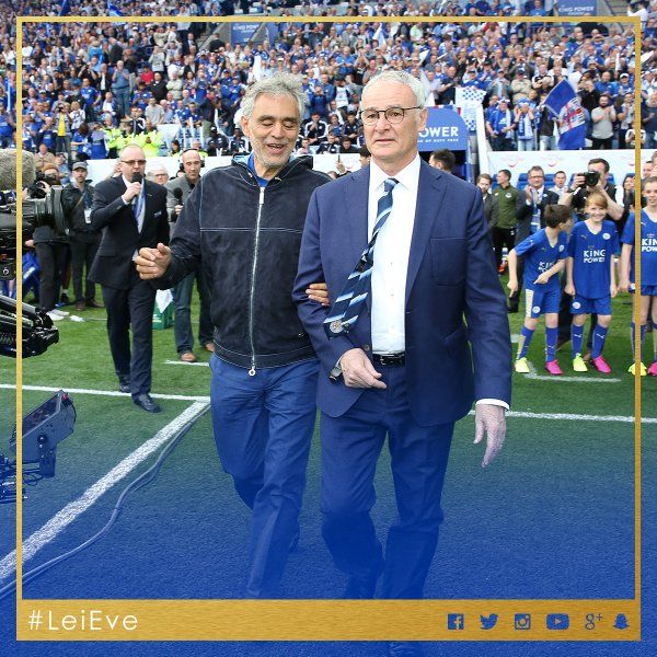 Leicester-Everton, spettacolo in campo ma anche prima del match. King Power Stadium stracolmo (nonostante i biglietti a prezzi folli), spedizioni di tifosi italiani in città e la potenza canora di Andrea Bocelli. Il tenore italiano ha cantato "Nessun dorma" e "Con te partirò" indossando la nuova maglia dei campioni della Premier.
