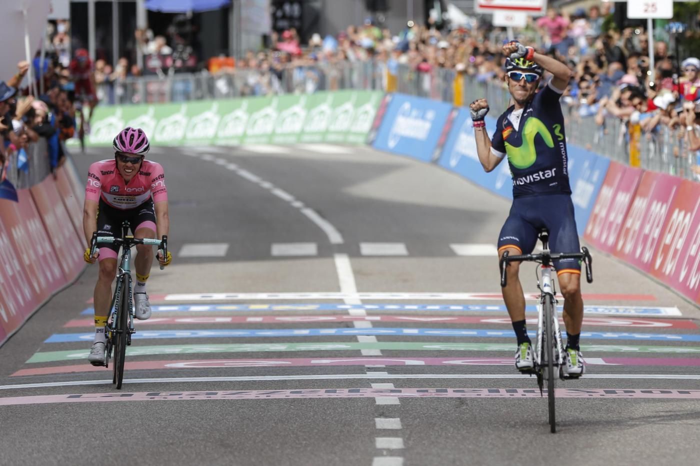 Lo spagnolo Alejandro Valverde (Movistar), ha vinto la sedicesima tappa del Giro d'Italia, la Bressanone-Andalo di 132 km. Valverde ha battuto allo sprint la maglia rosa Steven Kruijswijk e il russo Il'nur Zakarin giunto a 8" dal vincitore. Vincenzo Nibali ha dovuto alzare bandiera bianca giungendo a 1'46" dal terzetto vincitore.