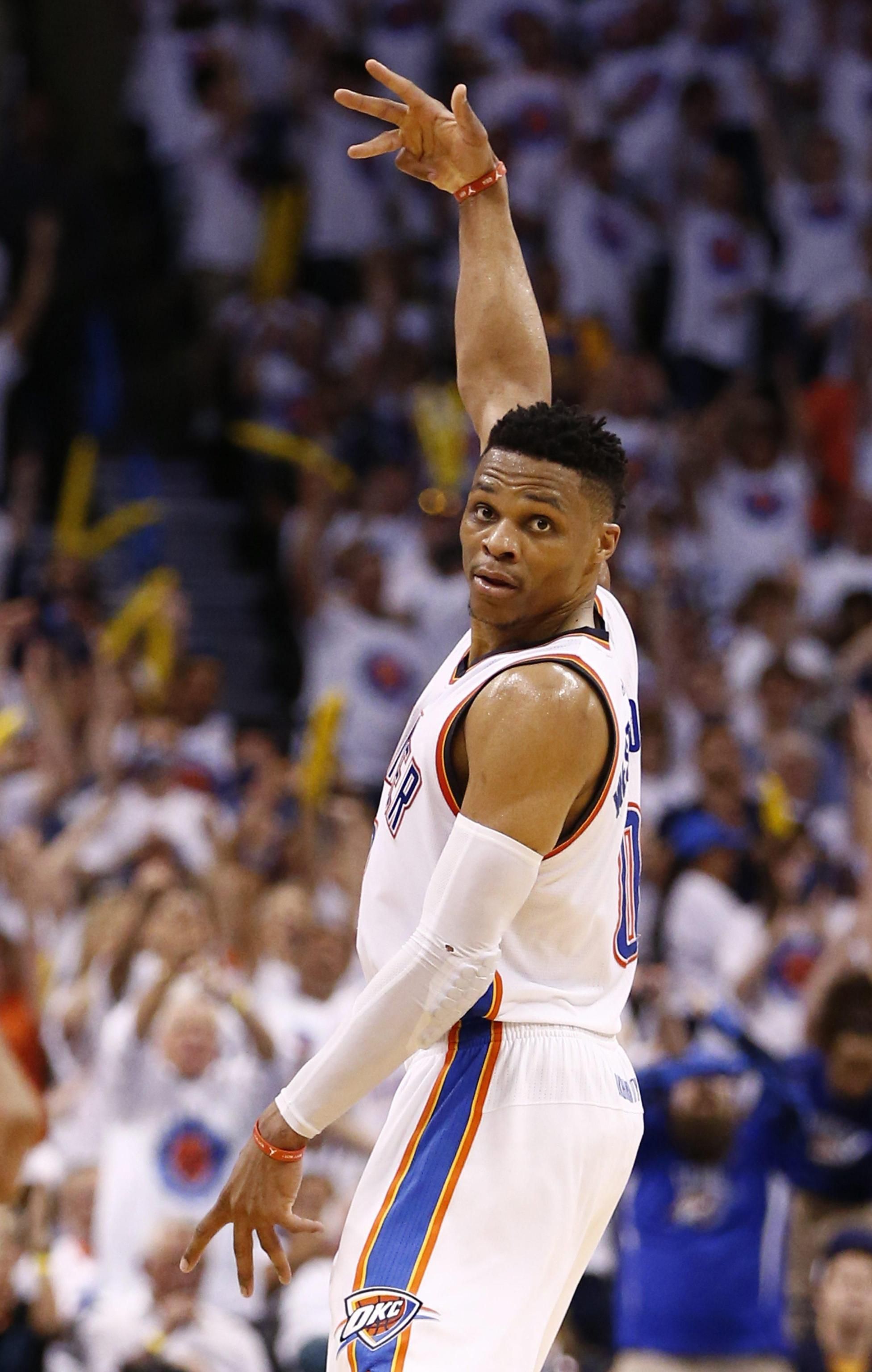 Russell Westbrook segna 36 punti e gliOklahoma City Thunder affondano i Golden State Warriors in gara4delle finali Nba. Finisce 118-94 con la stella di Oklahoma cherealizza una tripla doppia con 11 rimbalzi ed altrettanti assist.Thompson 26 punti per i Warriors. Curry si ferma a 19. Oklahomaora è in vantaggio 3-1 nella serie e domani potrebbe chiudere conuna vittoria in California.