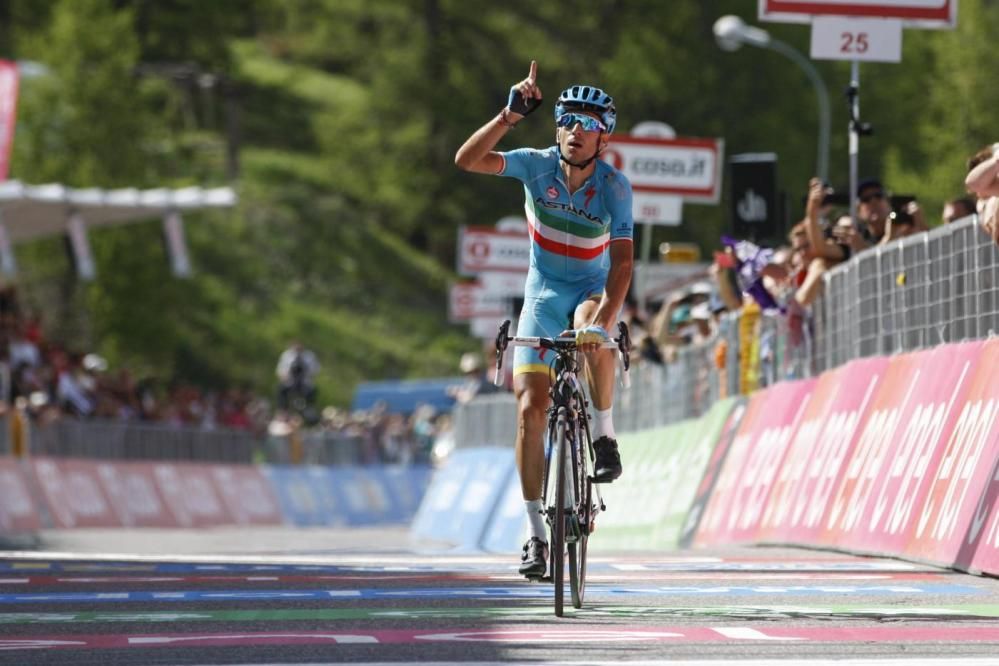 Vincenzo Nibali vince in solitaria a Risoul la 19.a tappa del Giro D'Italia. L'azzurro dell'Astana trae il massimo beneficio dalla caduta del maglia rosa Kruijswijk e ora è al secondo posto in classifica generale. Chaves, arrivato secondo al traguardo, è il nuovo maglia rosa. Nella classifica generale Nibali insegue il colombiano che ha un vantaggio di soli 44" a due tappe dal termine del Giro. Lo spagnolo Valverde è invece fuori dai giochi, ma può ancora giocarsi il podio con Kruijswijk.