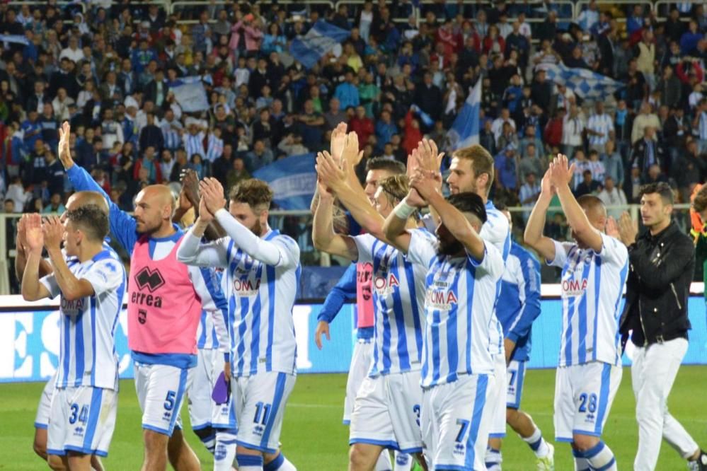 Il primo round se lo prendono i biancazzurri, mettendo un piede nella prossima Serie A: all'Adriatico il Pescara supera 2-0 il Trapani nella finale d'andata dei playoff di Serie B. Benali sblocca il match nella ripresa, quindi il gol numero 30 in stagione di Lapadula firma il raddoppio. Pesantissima l'espulsione di Scozzarella per un ingenuo doppio giallo, che costringe i granata a giocare in dieci per un'ora. Giovedì il ritorno al Provinciale.