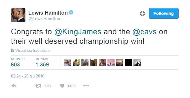 Nella notte il mondo dello sport si è fermato per gara 7 delle Finals Nba. Dopo una partita epica hanno trionfato i Cleveland Cavs e LeBron James si è preso i complimenti di molti sportivi, da Hamilton a Kakà passando per Boateng. Lindsey Vonn, invece, ha voluto fare i complimenti a Steph Curry nonostante la sconfitta dei suoi Warriors.