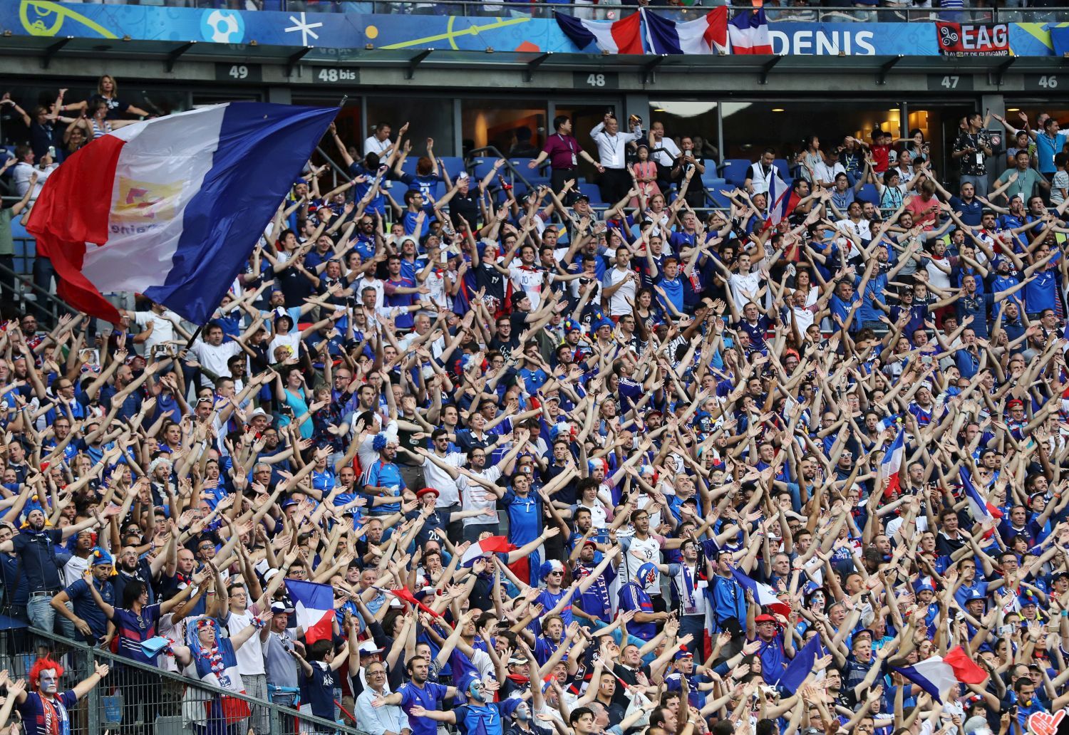 Spettacolo allo Stade de France prima dell'inizio di Portogallo-Francia. Per la cerimonia di chiusura del torneo in campo si è presentato anche David Guetta, che, insieme a Zara Larsson, ha suonato "This One il for you", l'inno di Euro 2016.